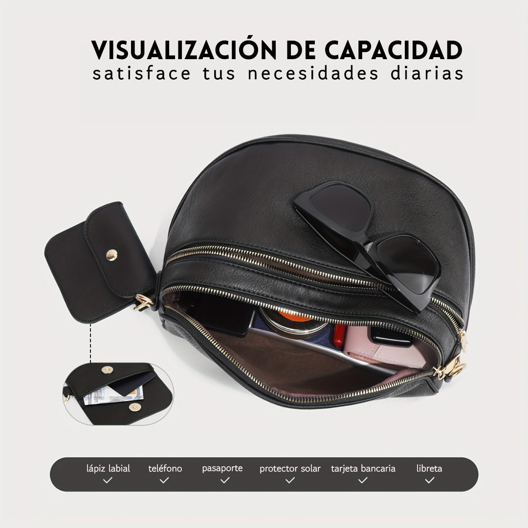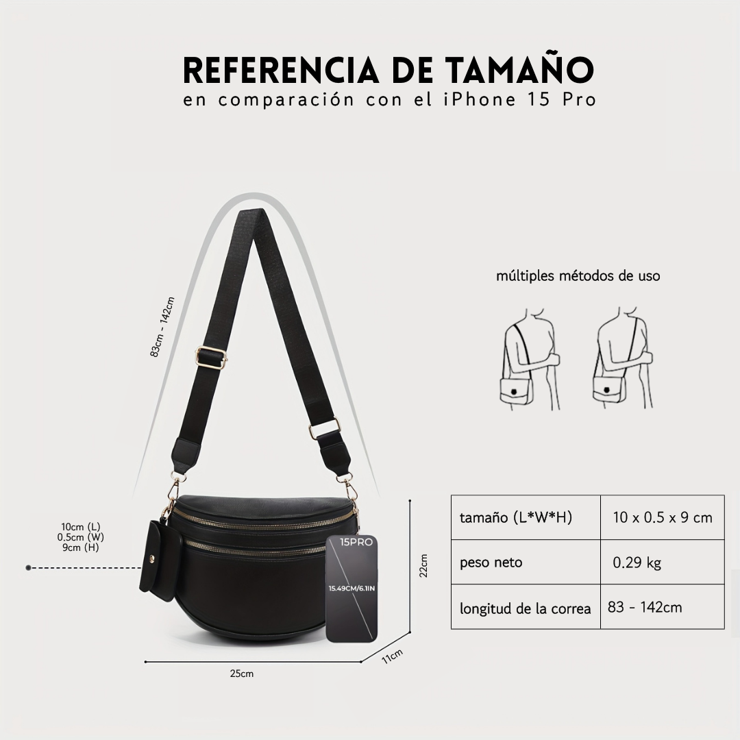 Diseñado con un espacioso compartimento principal, además de un bolsillo trasero de seguridad y un bolsillo delantero de fácil acceso. Todo tiene su lugar, por lo que nunca más tendrás que rebuscar en el fondo.